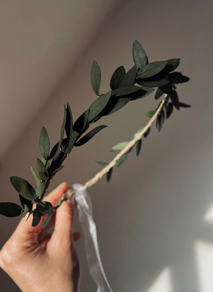 Simple eucalyptus, olive or bay leaf crown to adorn your Greek inspiration regalia for Prom night